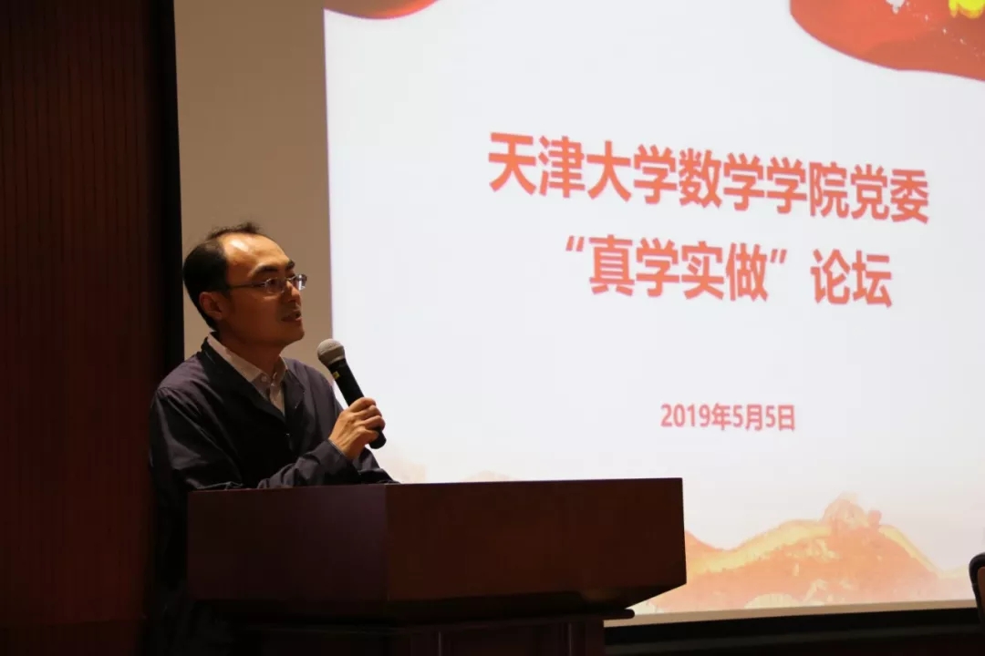 为深入学习贯彻全国教育大会精神、习近平总书记在学校思想政治理论课教师座谈会重要讲话精神,5月5日下午数学学院党委在北洋园校区杏荪楼A102报告厅举办“真学实做”论坛,邀请马克思主义学院副院长张宇教授为数学学院师生党员、入党积极分子作《新时代教育发展的指南与行动》专题报告。
