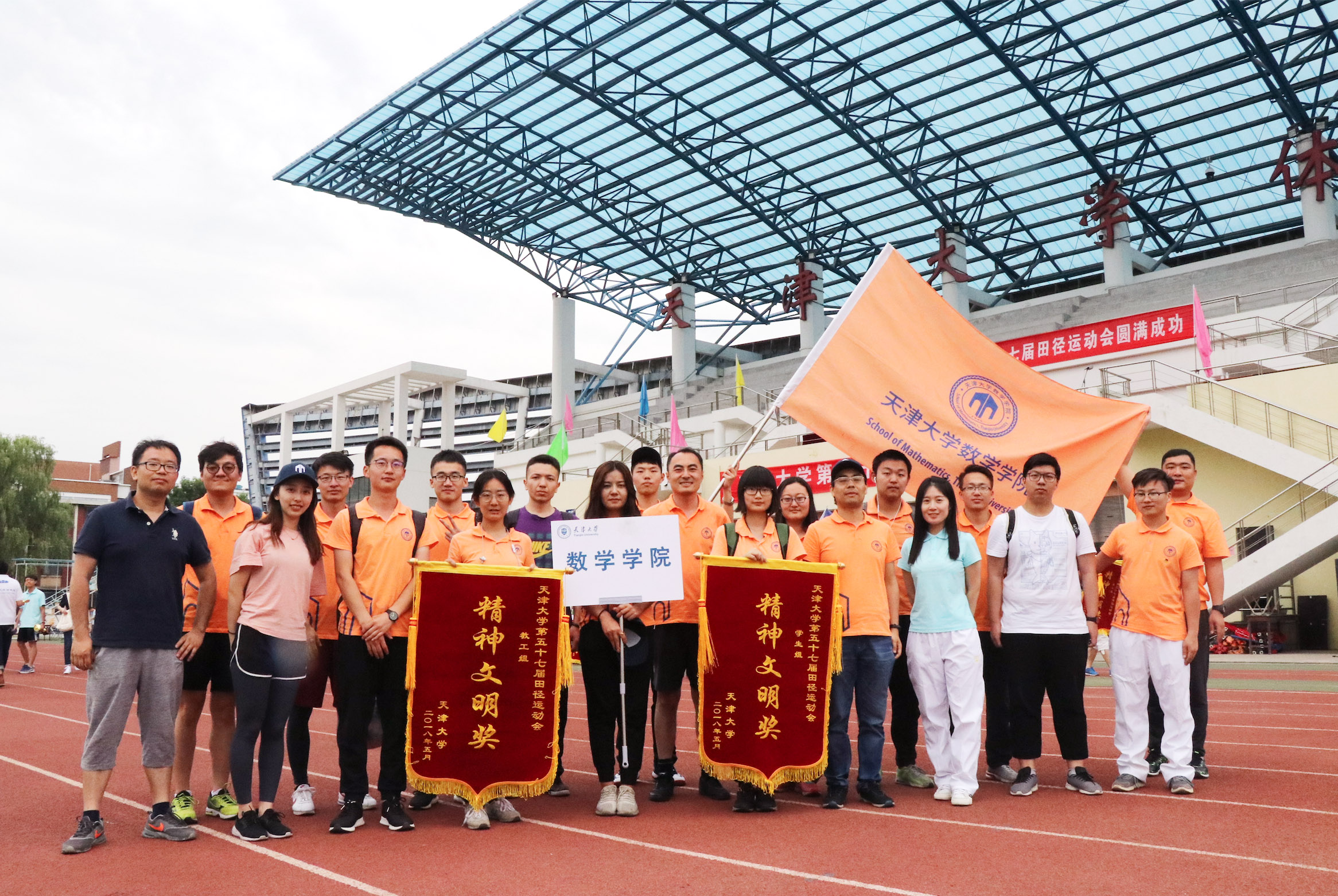 闭幕式上,我院成为收获“教工组精神文明奖”和“学生组精神文明奖”的双料得主,这是数学学院每一位运动员坚持不懈的结果,是数学学院全体师生团结一致,上下齐心,奋勇争先的信念使然。“台前精彩几分钟,幕后耕耘数天长。”向参加运动会表演和比赛的所有老师和同学表示感谢,因为有你们,我们的数学橙才更鲜艳;因为有你们,我们的北洋蓝才更广阔。在这里,还要向一直在幕后默默奉献的朱峰、闫龙涛、赵燊、孙鸿鹏、于丰恺送上感谢。