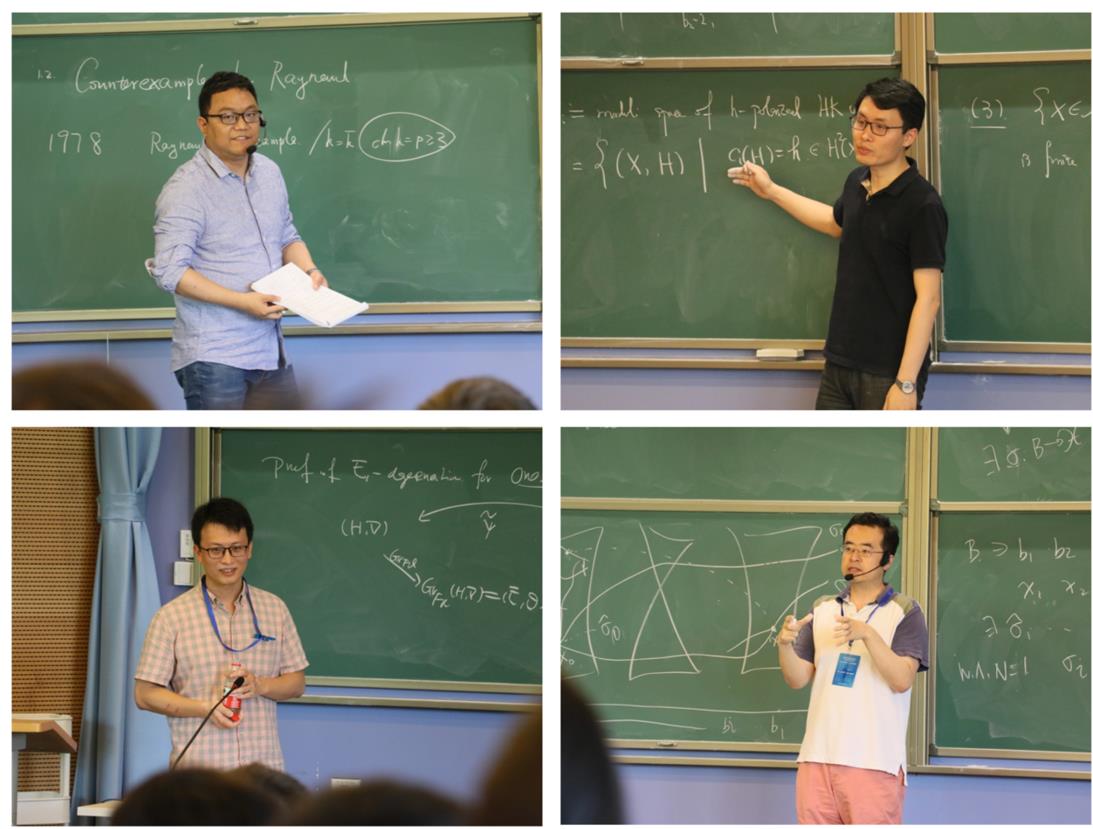 四位国内报告人分别做了一小时报告。苏州大学顾怡阐释了他与合作者关于正特征代数曲面上Miyaoka-Yau型不等式的最新结果;复旦大学李志远带来了他与合作者关于非极化Shafarevich型问题的最新进展以及与Torelli定理的关系;中国科学技术大学盛茂重点分析了相交de Rham复形上的分解定理的推广,并给出了E1退化的一种纯代数证明;北京大学田志宇诠释了其与合作者关于正特征上光滑Fano超曲面上弱近似问题的一些最新进展。
