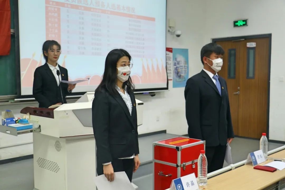 李宜霏同志宣读《共青团天津大学数学学院委员会委员选举办法(草案)》,孙鸿鹏同志宣读大会总监票人和监票人名单,主持人宣布计票人名单后,全体参会代表一致通过。在总监票人石悦主持下,全体参会代表采用差额选举、无记名投票的方法选举出共青团天津大学数学学院第一届委员会委员。