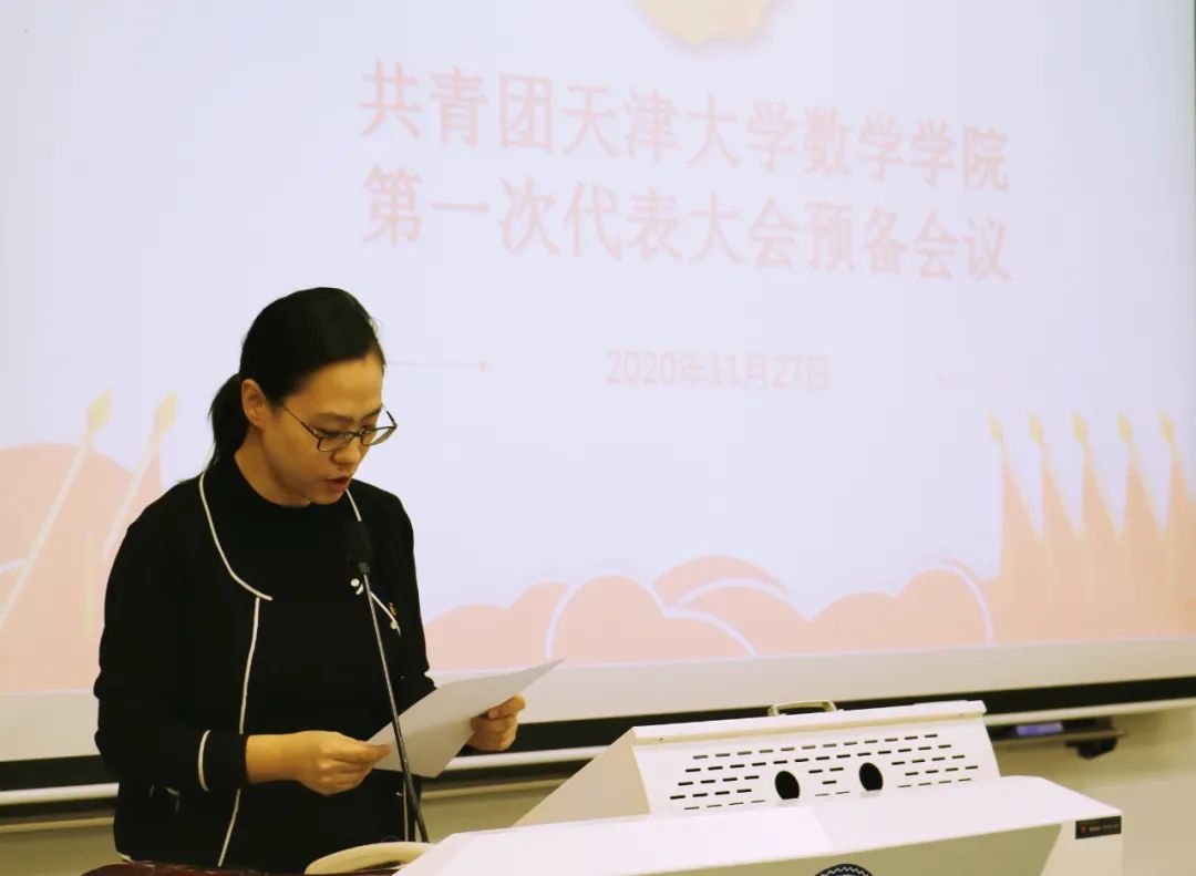 首先召开共青团天津大学数学学院第一次代表大会预备会议。全体与会代表审议通过了《代表资格审查小组工作报告》、《大会主席团成员提名名单》、《大会秘书长、副秘书长提名名单》和《大会议程(草案)》。