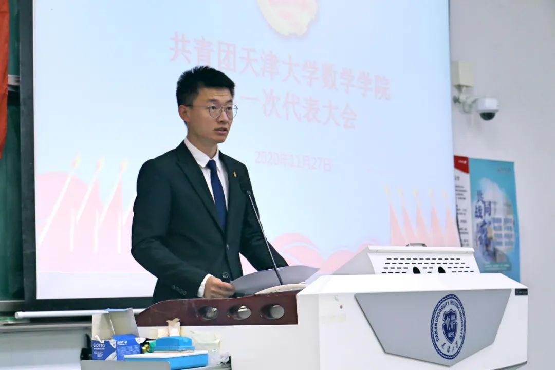 大会筹备工作组唐婧亚同志代表共青团天津大学数学学院委员会作《天津大学数学学院共青团工作报告》。报告指出,自数学学院成立以来,学院全体团员团结一致,努力进取,展现出数学学院的良好风貌。在校、院各级领导的亲切关怀、指导下,以及广大同学的积极参与和配合下,数学学院团委研究新方法,开拓新思路,在探索共青团工作的过程中不断磨合,取得了一系列成就。扎实做好基层团组织建设,充分发挥桥梁纽带作用,牢牢把握青年学习特点,努力推动青年新媒体工作,积极打造数学“加油站”,多措并举助力青年高质量就业,为培养社会主义合格建设者和可靠接班人贡献天大数学力量。