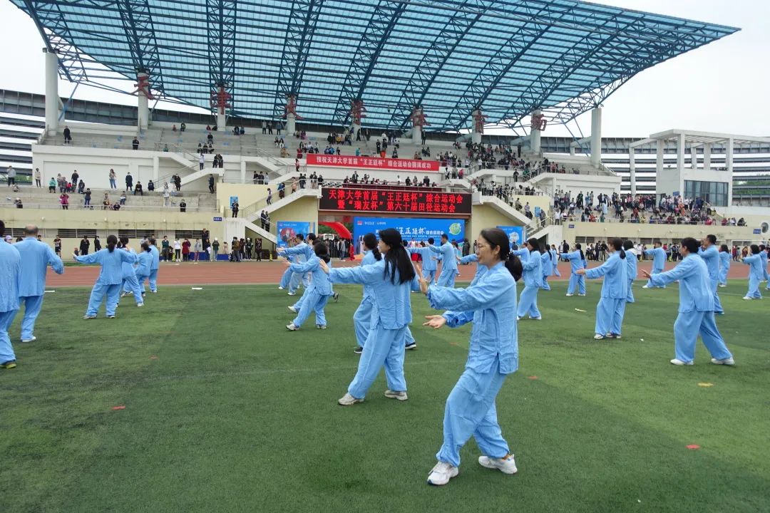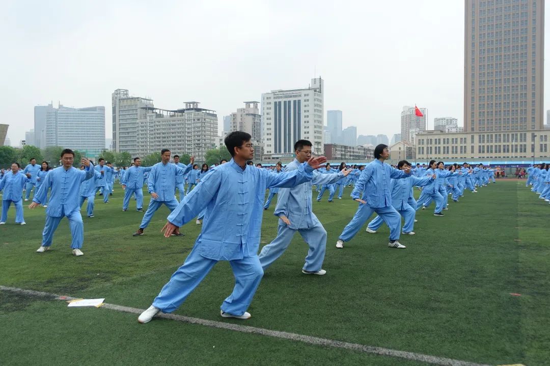在随后的全校教职工太极拳表演中,学院老师们动作规范,整齐划一,姿态饱满,精神昂扬,为运动会增添了一抹靓丽的色彩。