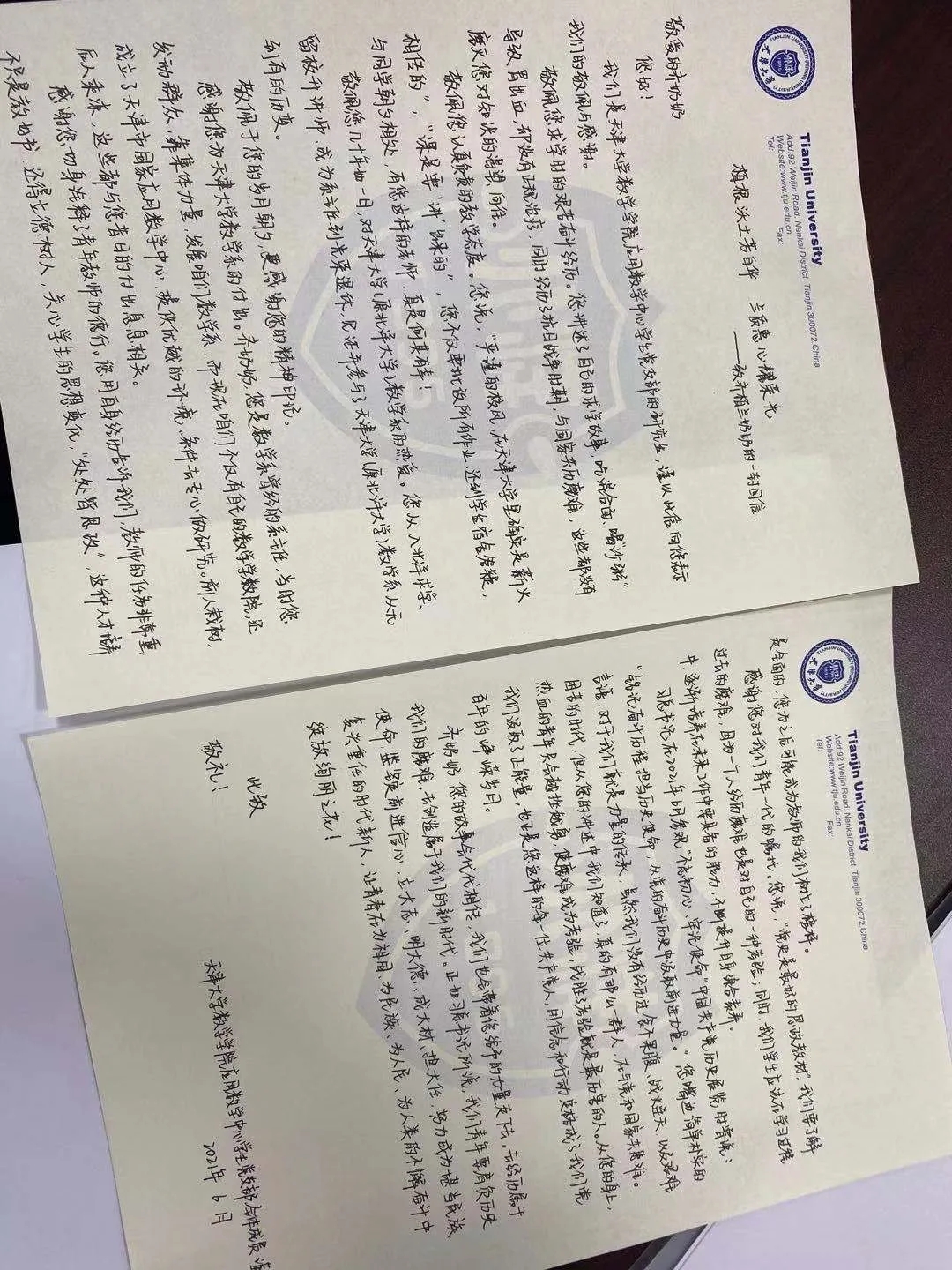 上次采访结束之后,齐植兰教授的经历深深感染了学院师生,同学们自发组织写信送给齐植兰奶奶,信中写到:“齐奶奶,您嘴边简单朴实的言语,对于我们就是力量的传承,虽然我们没有经历过食不果腹、战火连天、艰难困苦的时代,但是从您的讲述中,我们知道了,真的有那么一群人,在与党和国家共患难。从您的身上,我们汲取了正能量,也正是您这样的每一位共产党人,用信念和行动定格成了我们党百年的峥嵘岁月。我们也会带着您给予的力量走下去,去经历我们的磨难,去创造属于我们的新时代。” 2021年6月10日天津大学数学学院团委将齐老师的事迹和宣传视频发至数学学院各校友群和在校师生群,得到热烈反响,部分截图如下: