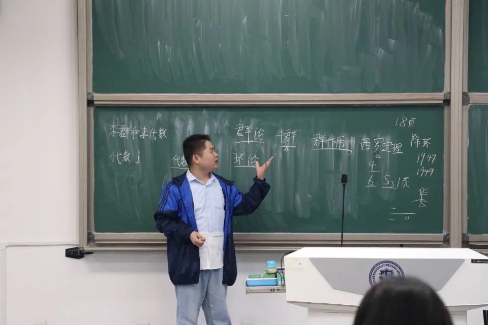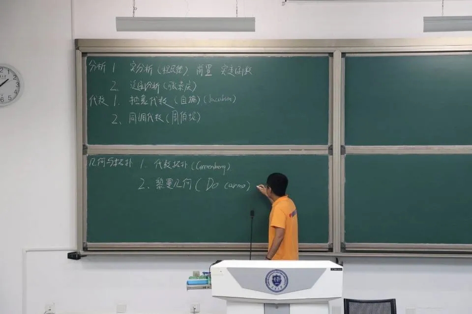 郑国强以“数学的深渊”和数学家华罗庚三行证毕定理开篇,提升同学们对代数课程的兴趣,增进对代数学发展历程的了解。他讲述代数一课程部分关键知识点,给出参考书目,例如《近世代数》《代数学引论》等。对于代数二课程,他主要提及范畴A1,A2,A3,加法范畴A4,A5,A6以及Able范畴A7,A8,A9。