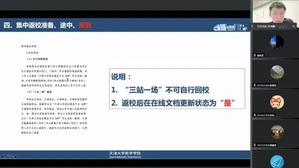 在集中返校前,学院全体辅导员面向所带年级全体学生召开返校政策说明会,对疫情复杂严峻的形势进行深入剖析。