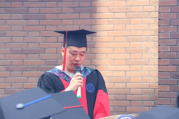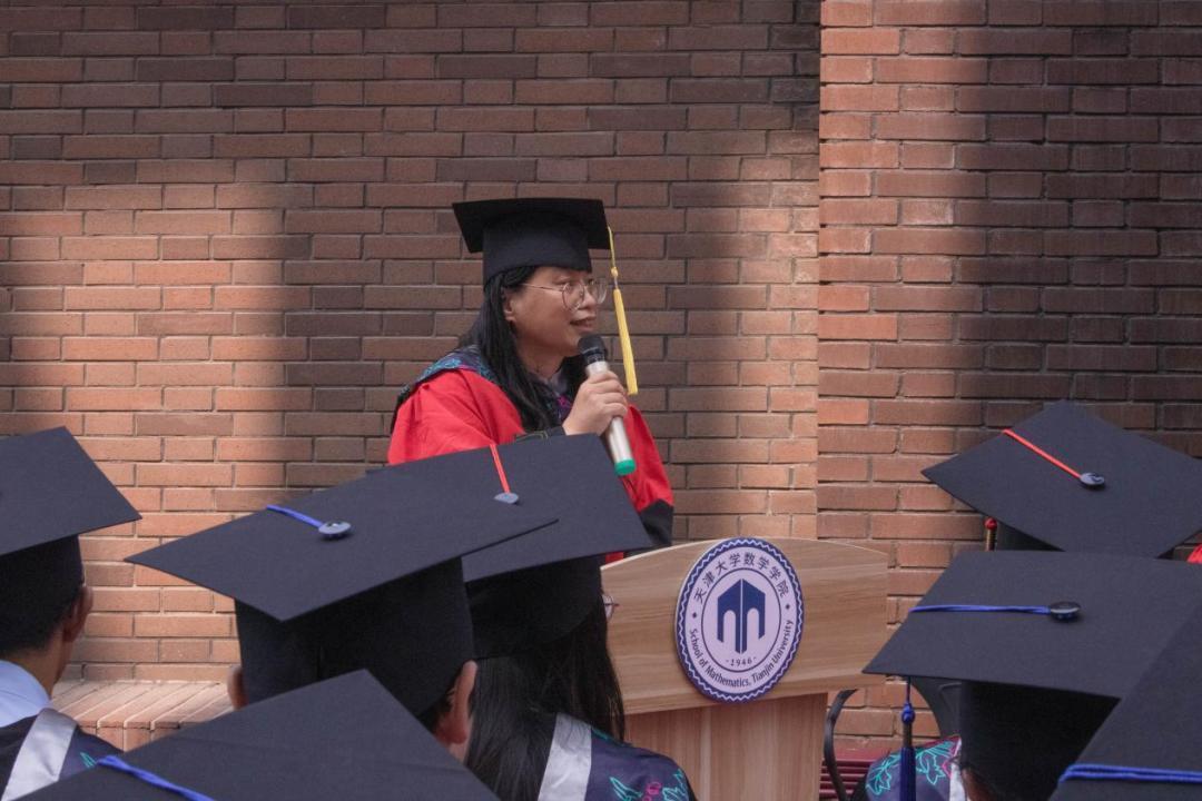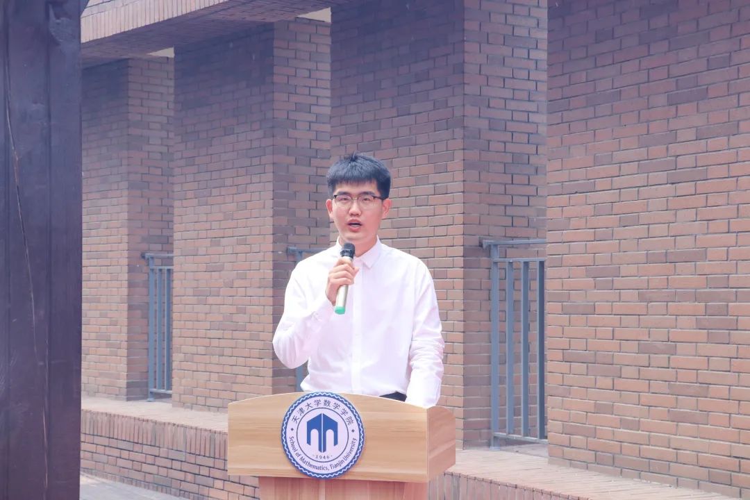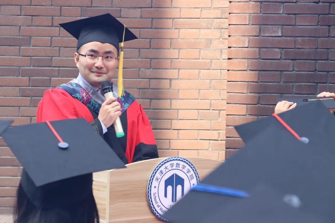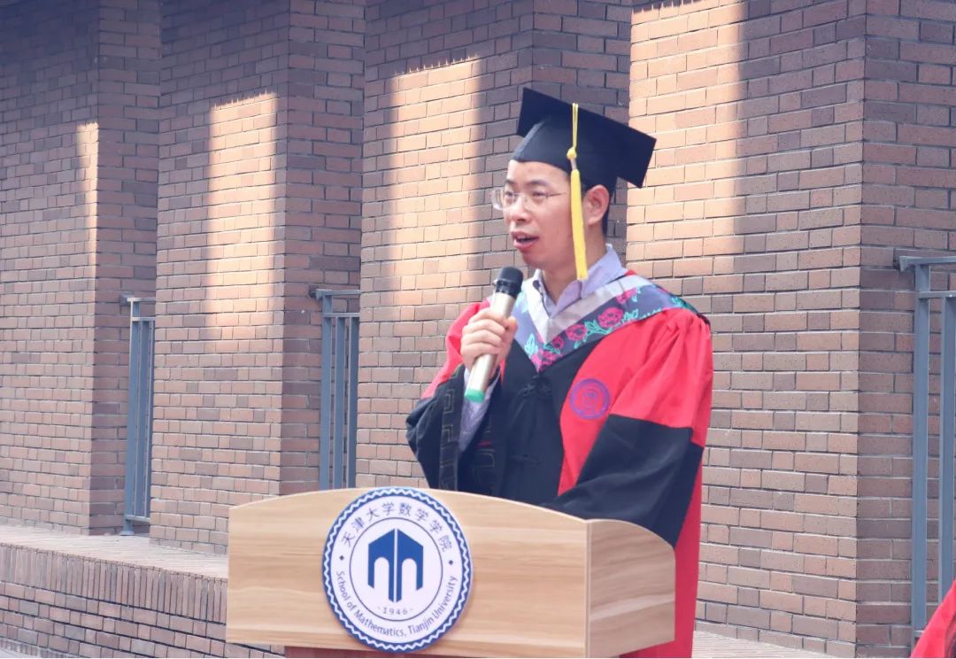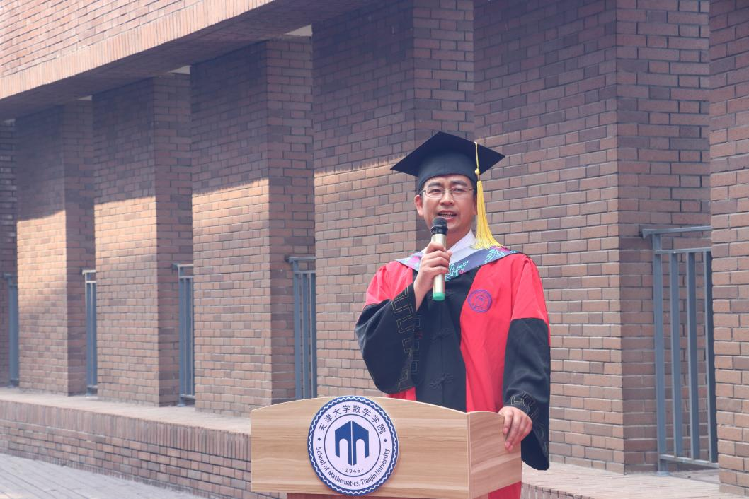本科生班主任代表田文义深情回顾了四年师生间的点滴,他勉励同学们继续传承天大数学的良好学风,不忘初心、实事求是,在实现中华民族伟大复兴的时代洪流中勇毅前进。