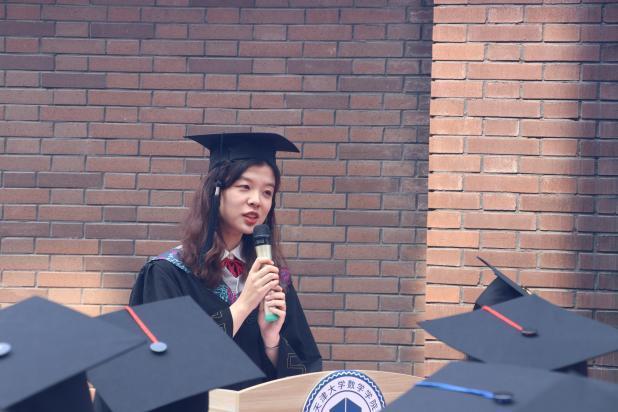 毕业生代表王东、石想依次发言,回顾求学成长历程,表达对学校、学院培养的感恩与不舍,期待未来传播数学精神,共扬校誉于无穷。