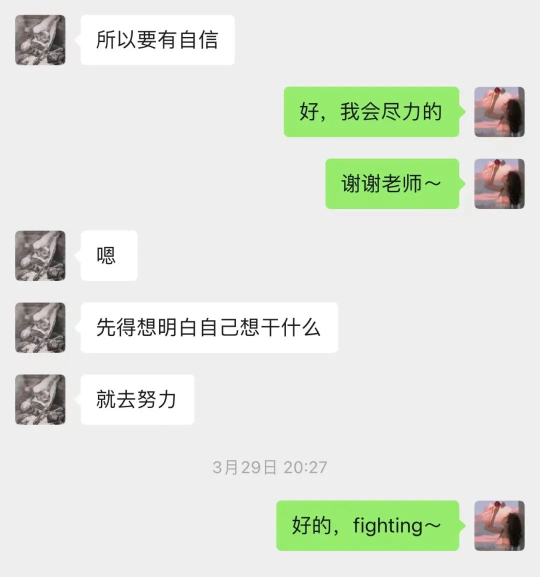 对于想要就业的学生,老师会分享很多相关行业的知识,并针对就业提出很多指导性的建议。疫情期间,对于有就业焦虑的学生,韩老师时常主动关怀、定期做心理疏导工作,有效缓解学生的焦虑。对于女同学,韩老师可以站在女性的立场,劝女同学不要因为社会对女性的固化印象就冒然选择教师职业而放弃其它更多样的职业道路,要更加谨慎地选择职业道路、真正实现自己的价值。
