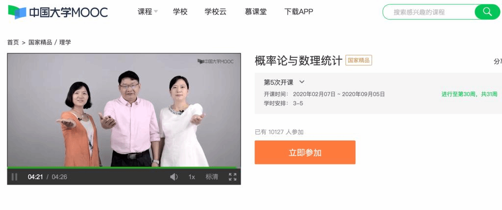 Tianjin University has a long history, "Probability Theory and Mathematical Statistics" course has excellent teaching tradition, outstanding teachers, is one of the key public basic courses. The MOOC teaching team of this course is led by Wang Fengyu, a national science fund winner for Distinguished Young Scholars and a distinguished professor of Yangtze River scholars. Guan Jing, the first prize winner of Tianjin young teachers' teaching basic skills competition, is in charge of the MOOC teaching team. Yang Lingling, a member of the MOOC teaching team, has won the second prize of the seventh Tianjin young teachers' teaching basic skills competition. Zhao Hui, a teaching assistant, has won the first prize of Tianjin University Young Teachers' teaching basic skills competition The grand prize of the teacher's lecture contest.