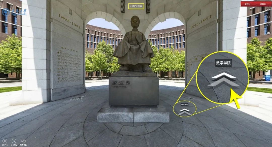 游览过程中,可以看到画面左侧有一个迷你缩略图,点击32教圆形楼的上的点位,就可以看到数学学院啦!