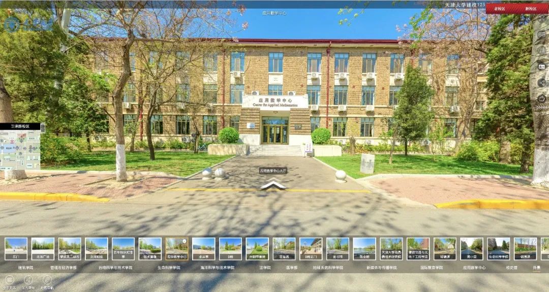 打开全景天大“新校区”页面后,点击左下角“全景列表”,找到“数学学院”即可一键直达啦!