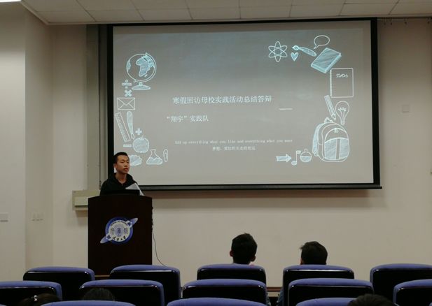最后上场队伍是“巍巍北洋,赫赫郸高”实践队,来自2017级求是数学班班的王瑞淇为我们带来了精彩的展示。这支实践队由来自九个不同院系的学生组成,从各个方面传递着天大的声音。他们通过举办联合宣讲,对有意愿考入天大的学生进行专业的介绍和辅导。