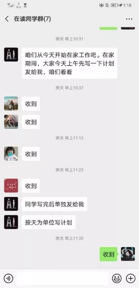 “一寸光阴一寸金。利用这段时间在家阅读文献,整理读书笔记,巩固之前的基础,同时利用网课学习专业课知识。”