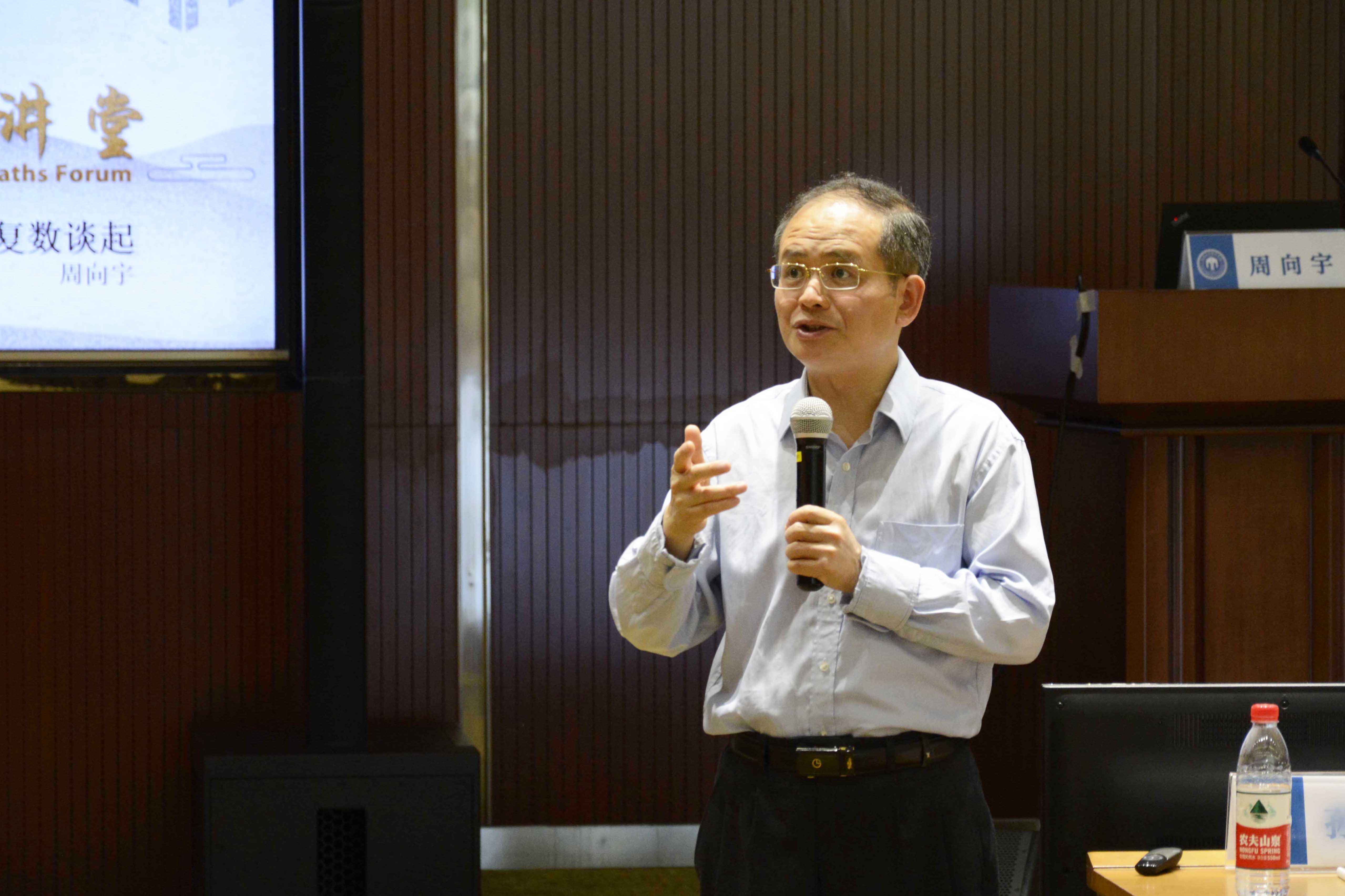 报告从复数的起源讲起,周向宇以三次方程的根式求解为线索,讲述了研究复数的动力及其诞生的历史。早在中国唐宋时期,王孝通所著的《缉古算经》、贾宪三角、秦九韶完成的《数书九章》已经获得高次方程的数值解。在随后的数百年里,西方数学家们的名字不断载入复数发展的史册。“要得到实根、却要绕道虚数”,Cardano发现复数,解开困扰已久的数学难题;Bombelli引入复数论证前人问题;Wallis用几何方法解释虚数;Girard、Euler、d'Alembert、Gauss等人提出、证明代数基本定理……这些数学先驱使虚数成为数系大家庭中一员,加深了复数理论。