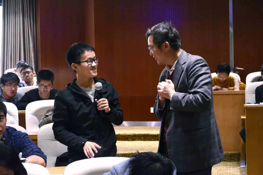 本科二年级学生提问,多项式函数的拟合在数据科学有什么应用。袁亚湘回应,实际的数据问题往往比较复杂,在高维空间上,常用的拟合函数本质是线性函数再加上分段函数,是用多层的简单函数的复合来构造。只用多项式函数逼近在高维计算上是繁杂且不可行的。
