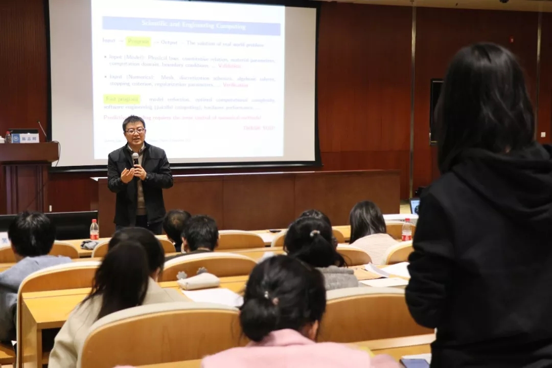 Next, Chen Zhiming illustrated how mathematics played an important role in solving real problems through giving examples of eddy current and electromagnetic field calculation.